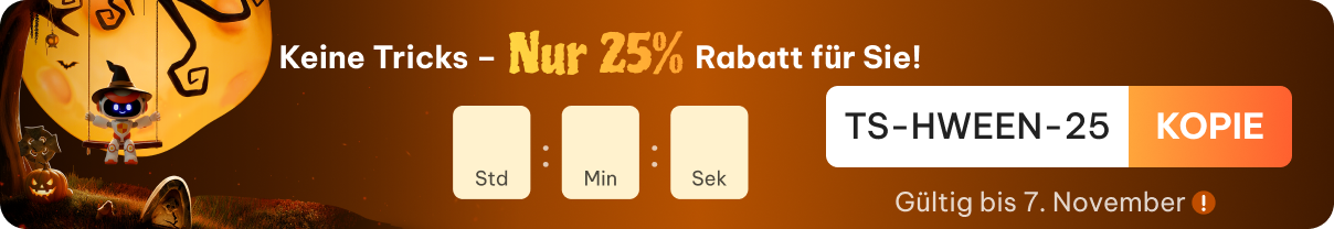 Wir bieten eine 30-tägige Geld-zurück-Garantie für alle Produkte an. Wenn nach der Analyse Ihrer Probleme keine Lösung gefunden wird, haben Sie Anspruch auf eine Rückerstattung. Bitte überprüfen Sie unsere Rückerstattungsrichtlinien unter https://www.tenorshare.de/company/refund-policy.html