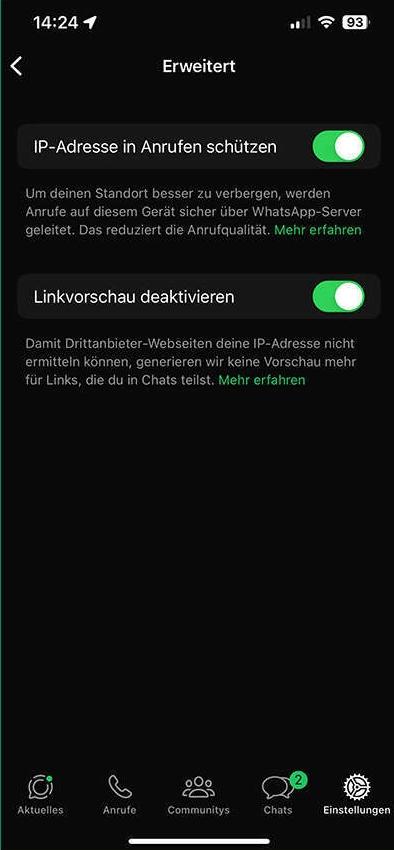 → Deaktivieren Sie die „Link-Vorschau“ in den Datenschutz-Einstellungen von WhatsApp.
